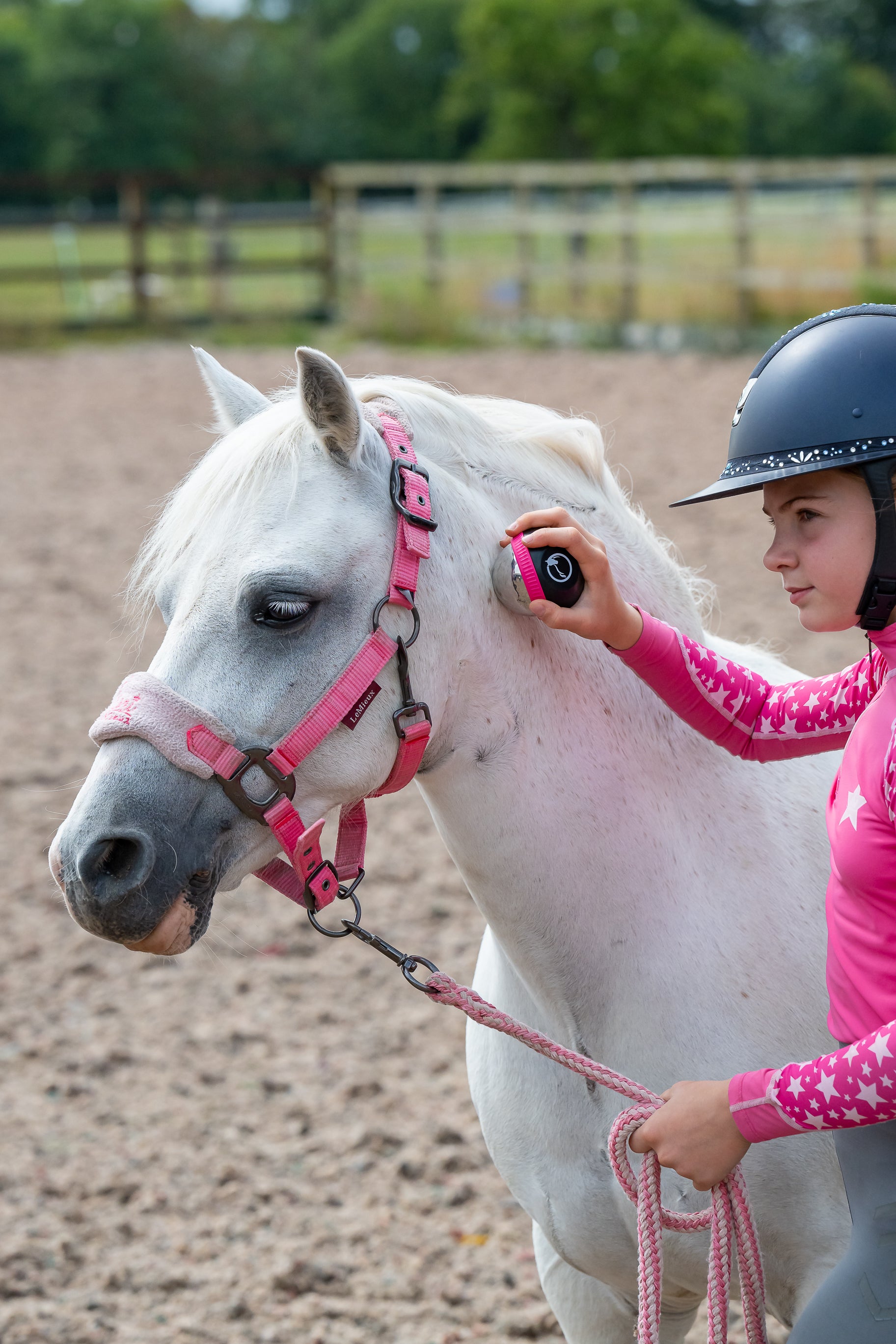 Its easy to use and whilst I still like to use my hands and touch my horse the equiball makes it easier to work all over his body .We like it 😊