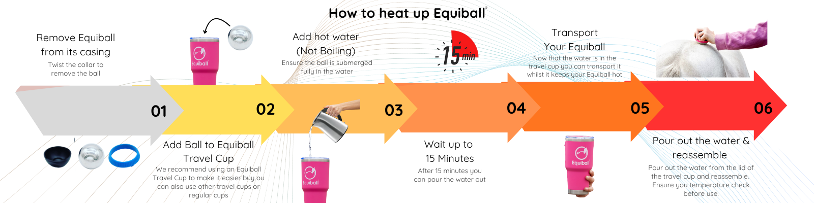 Please ensure you dont overheat the ball and test on your own skin before using on your horse.